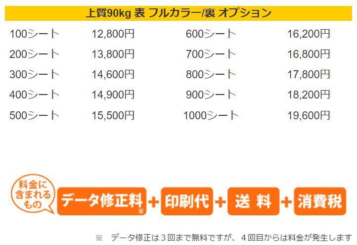 片面カラー印刷 100シート~ ※数量オプションで印刷数を増やすことができます